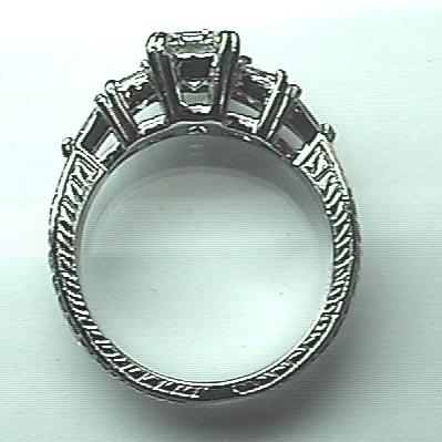 Beautifully detailed design with a shimmering 1ct emerald cut center diamond EGL certified H, SI1 (or better). An additional 3/4cttw in lustrous emeralds and baguettes gracefully tapers down to the finely engraved band. Great quality diamonds make this majestic ring shine! Give her the quality ring she deserves in a once in a lifetime design!